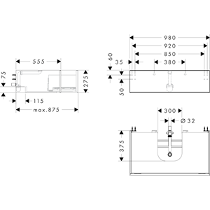 • tvättfat/tvättställ med slipad undersida och bänkskiva måste beställas separat