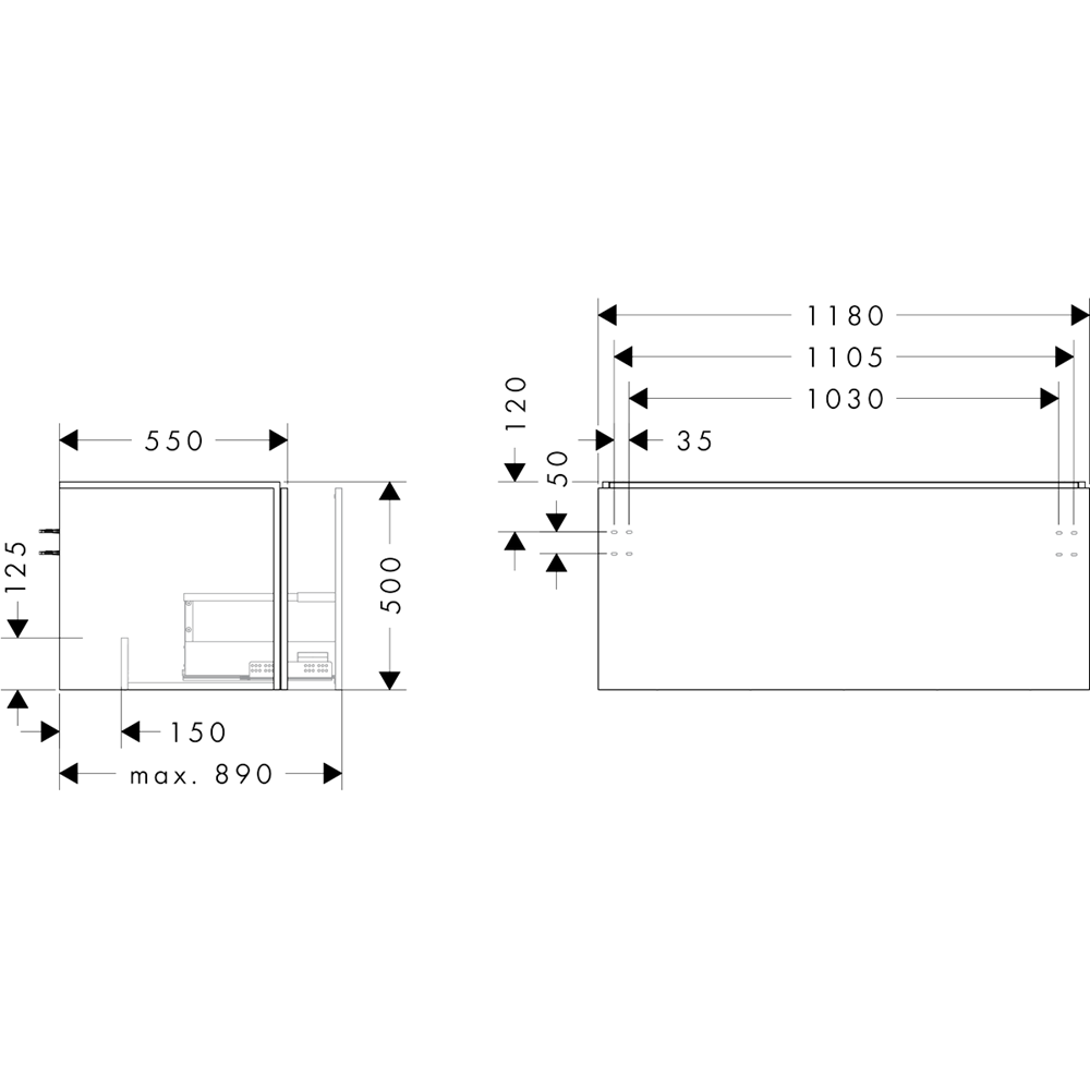 • tvättfat/tvättställ med slipad undersida och bänkskiva måste beställas separat