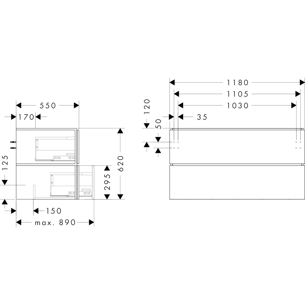 • tvättfat/tvättställ med slipad undersida och bänkskiva måste beställas separat