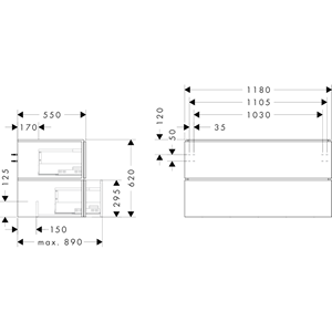 Xilesa E Kommod 1180/550 med 2 lådor bänkskiva med utskärning i mitten