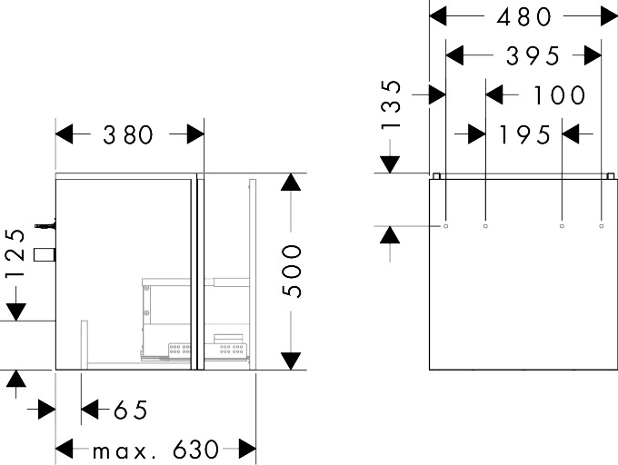 • platsbesparande vattenlås (art. 54235000) krävs och måste beställas separat