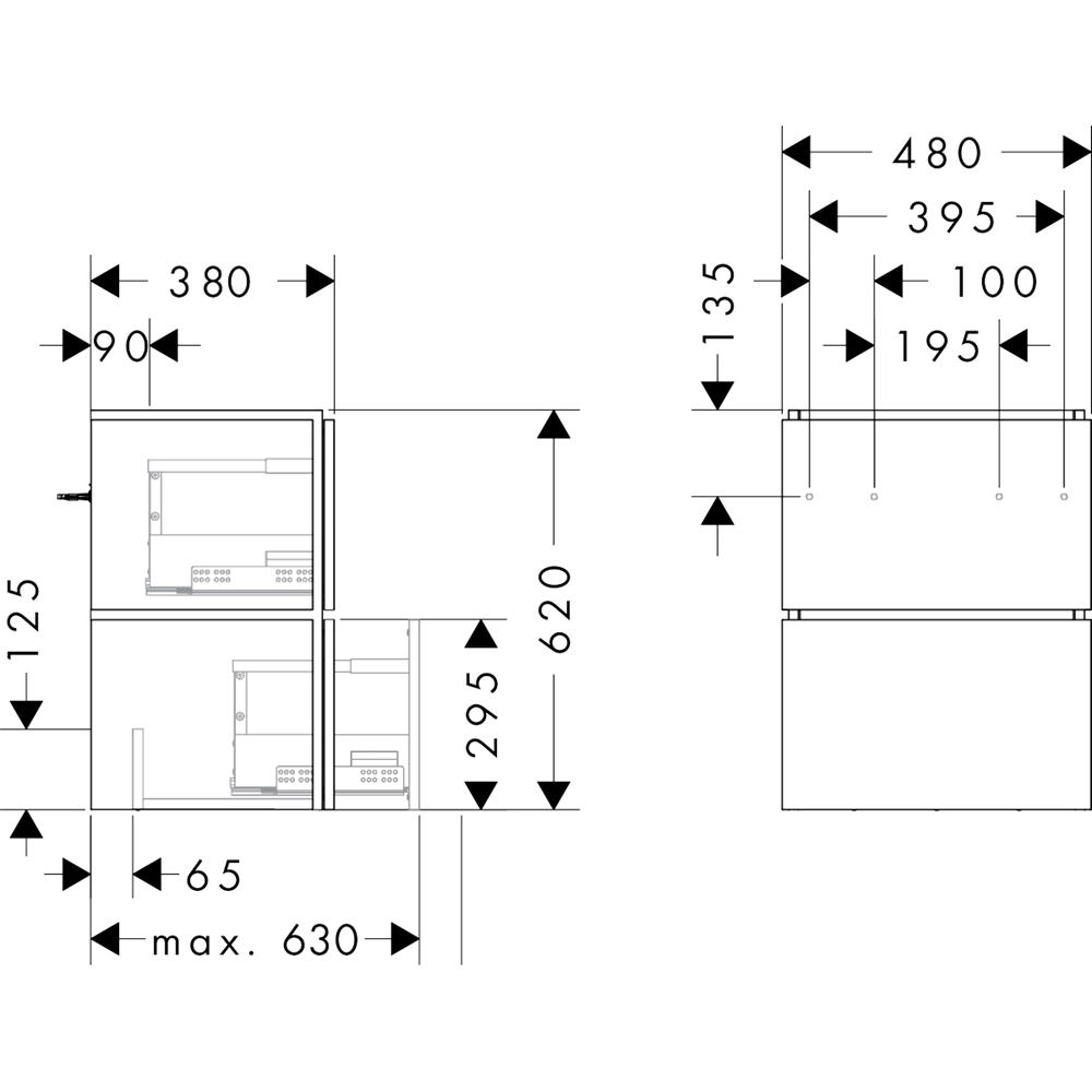• platsbesparande vattenlås (art. 54235000) krävs och måste beställas separat