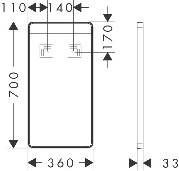 Xarita Lite Q Spegel med horisontell LED-belysning 360/30, väggströmbrytare Mattsvart