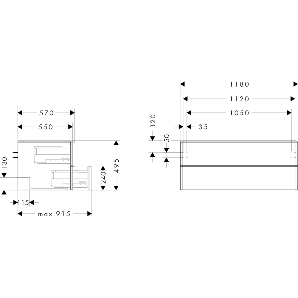 Xelu Q Kommod mörk valnöt 1180/550 2 lådor för bänkskiva utskärning center