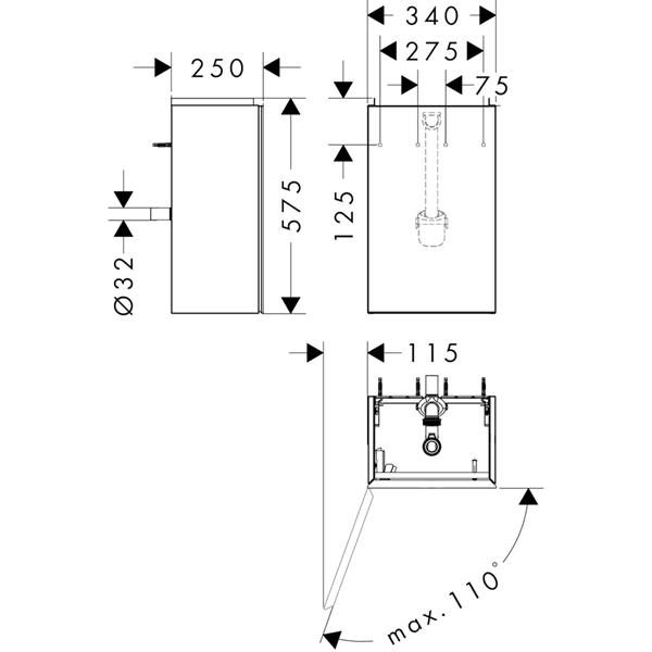 • 1 platsbesparande vattenlås ingår med vattentätning 50 mm