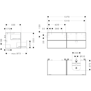 Xevolos E Kommod matt skiffergrå 1370/550 med 4 lådor bänkskiva med utskärning t