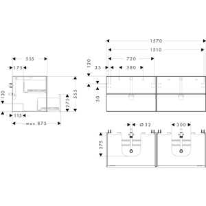 • tvättfat/tvättställ med slipad undersida och bänkskiva måste beställas separat