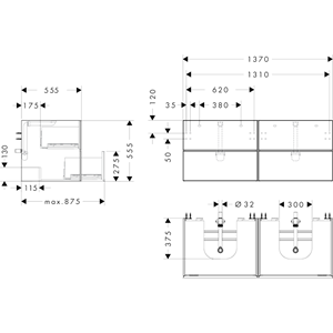 Xevolos E Kommod matt vit 1370/550 med 4 lådor bänkskiva med 2 utskärningar