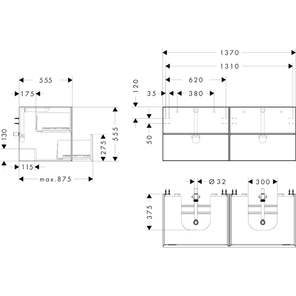 • tvättfat/tvättställ med slipad undersida och bänkskiva måste beställas separat