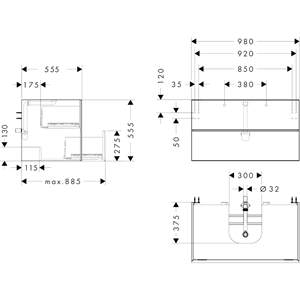 • tvättfat/tvättställ med slipad undersida och bänkskiva måste beställas separat