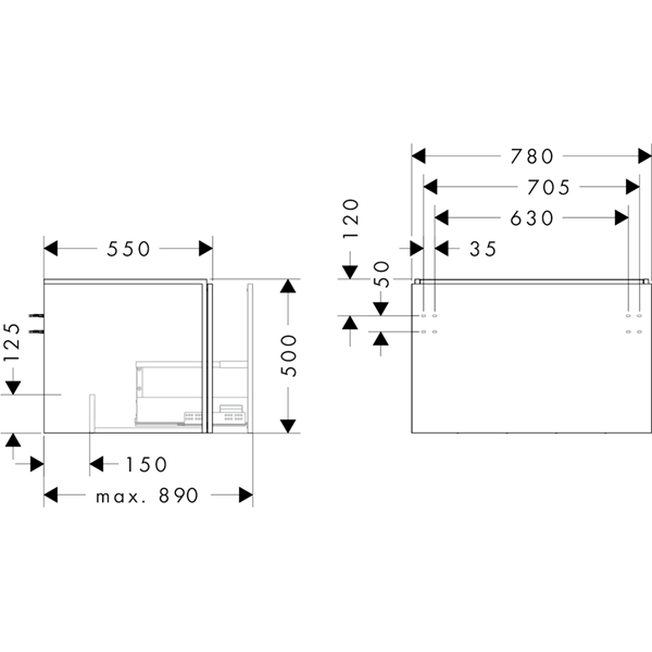 Xilesa E Kommod 780/550 med 1 låda bänkskiva med utskärning i mitten