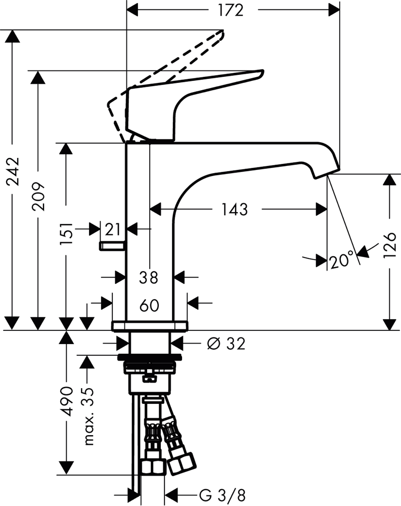 • består av: 1-grepps tvättställsblandare, bottenventil