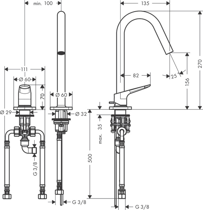 • består av: 2-håls tvättställsblandare, bottenventil