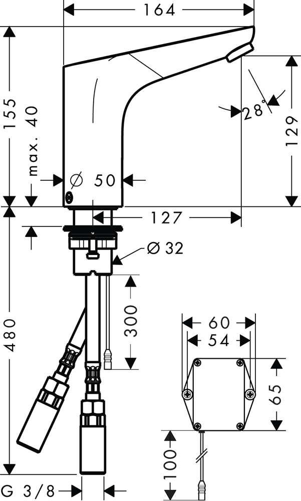 Focus Sensorstyrd tvättställsblandare 130 med temperaturreglering batteridriven