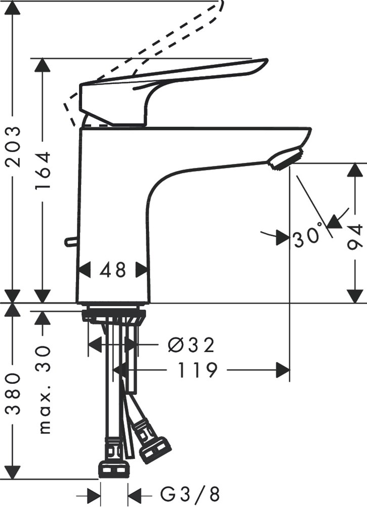• består av: 1-grepps tvättställsblandare, bottenventil