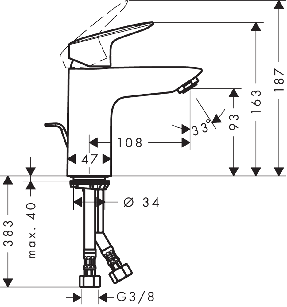 • består av: 1-grepps tvättställsblandare, bottenventil