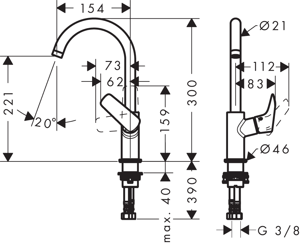 Logis tvättställsblandare 210 med svängbar pip utan bottenventil