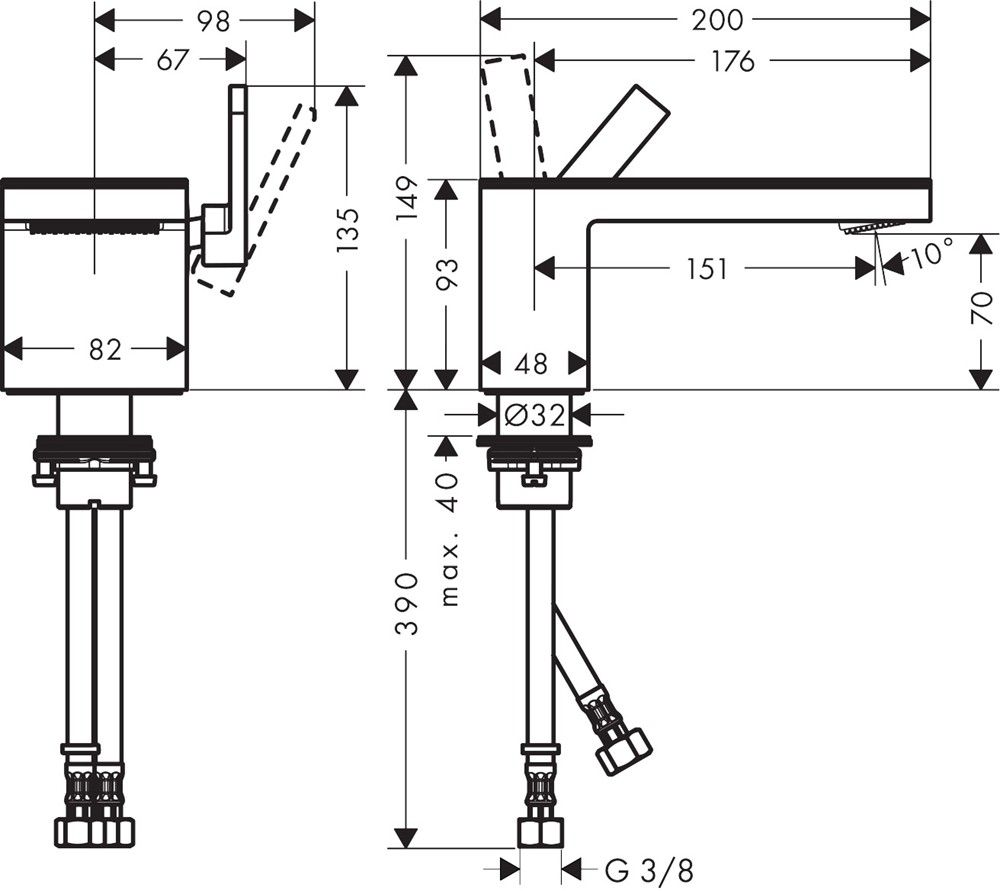• består av: 1-grepps tvättställsblandare, platta, bottenventil