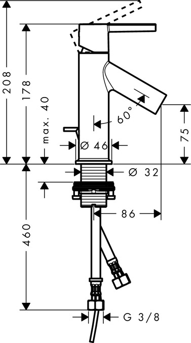 • består av: 1-grepps tvättställsblandare, bottenventil