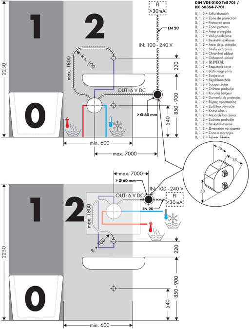 • permanent sköljning aktiverbar (enkelt vattenflöde i 180 sekunder, lämplig för termisk desinfektion)