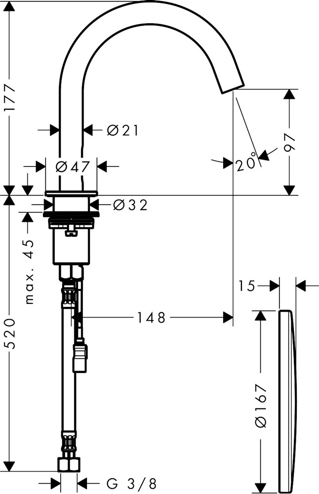 • rengöringsläge: manuellt vattenstopp för rengöring av tvättställ
