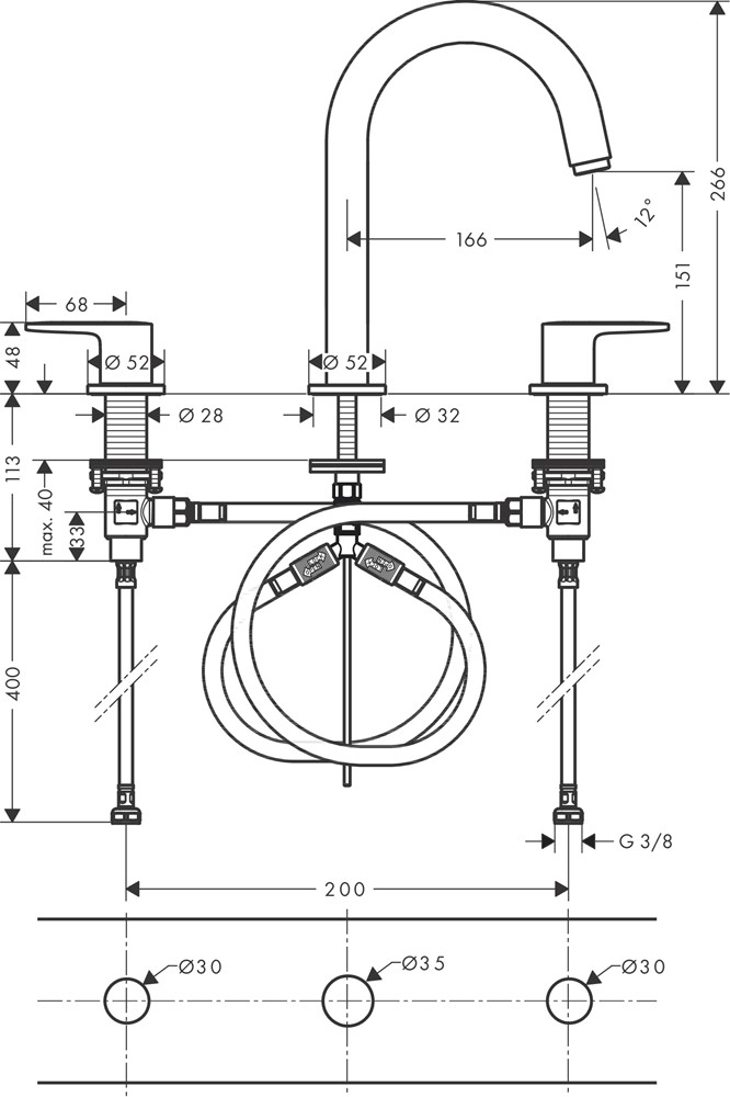 • består av: 3-håls tvättställsblandare, bottenventil