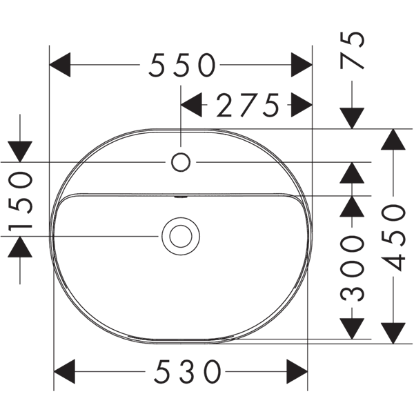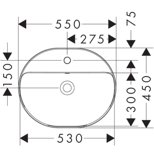 Xuniva U Infällt tvättställ 550/450 med blandarhål och bräddavlopp, SmartClean Vit