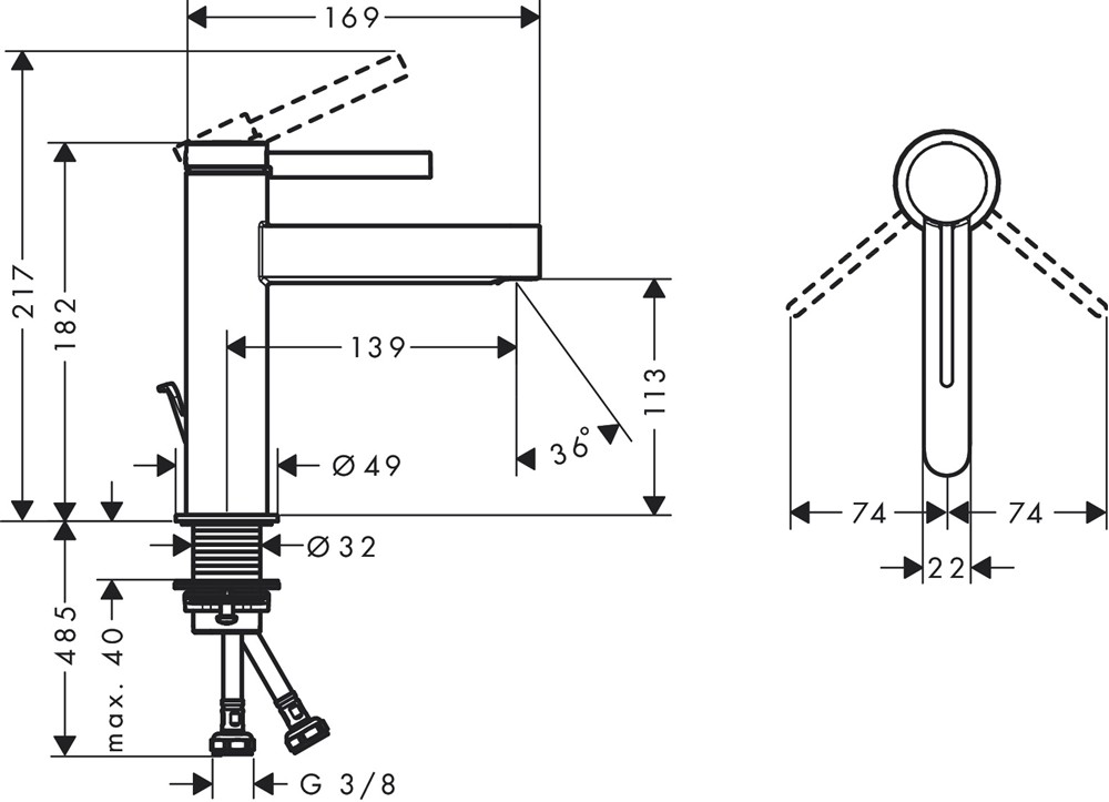 • består av: 1-grepps tvättställsblandare, bottenventil