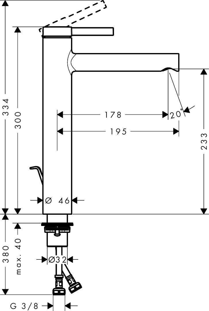 • består av: 1-grepps tvättställsblandare, bottenventil