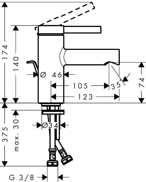 • består av: 1-grepps tvättställsblandare, bottenventil