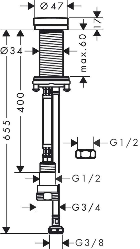 • anslutningsdimension: G ½ inklusive adapter G ¾