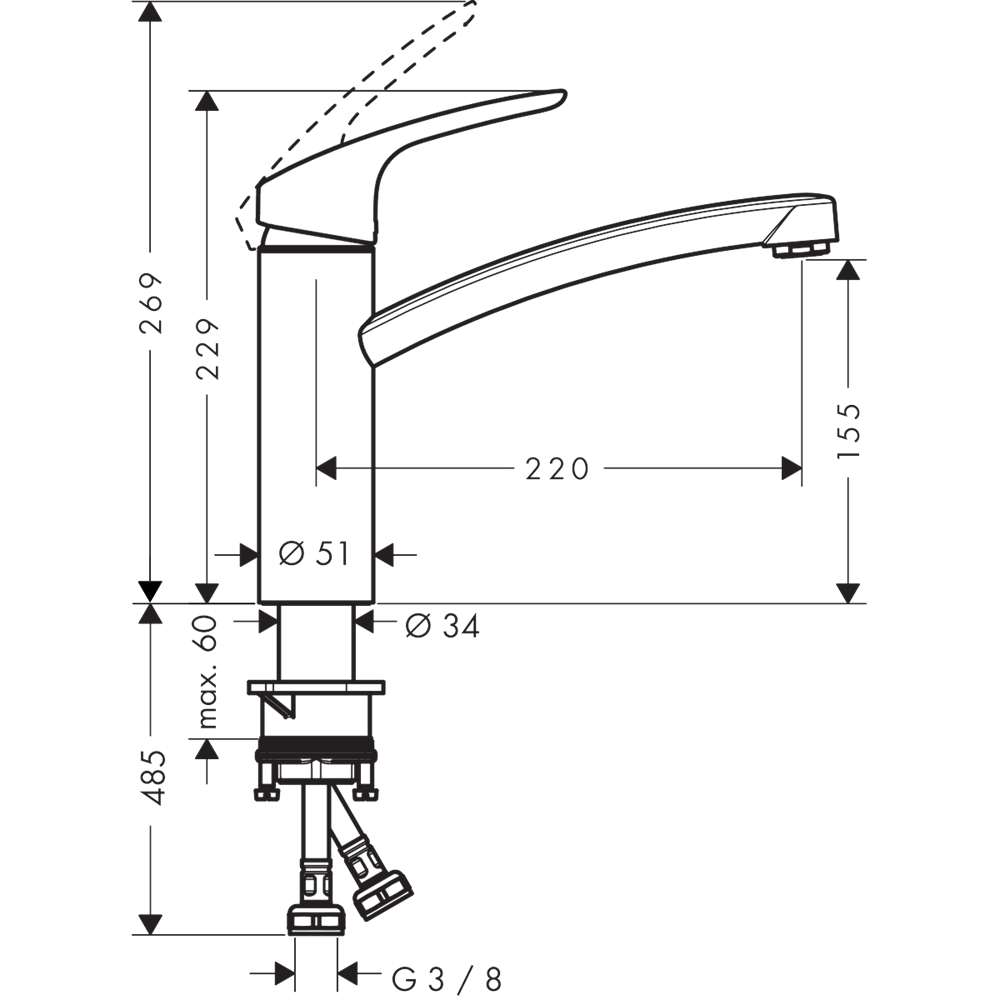 Focus M41 köksblandare 160, 1jet Rostfri finish