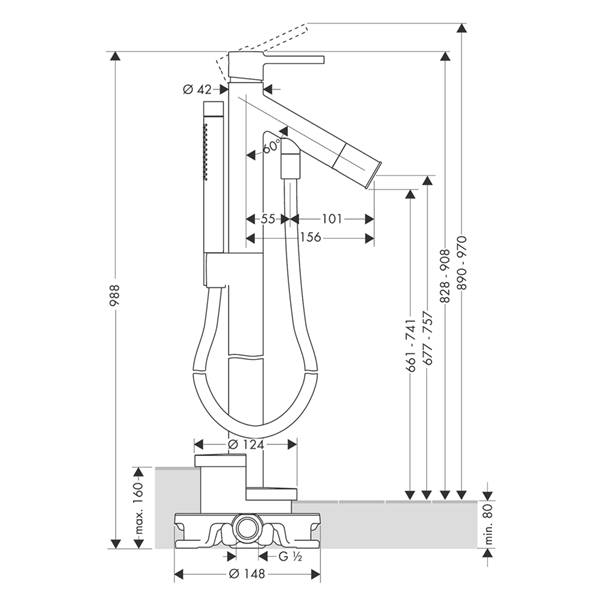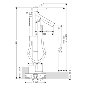 • består av: 1-grepps badkarsblandare för golvmontering, pinnhanddusch, duschhållare