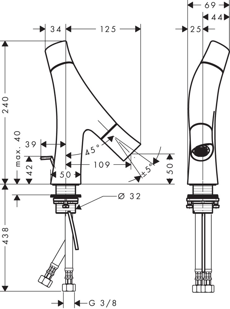Axor Tvättställsblandare Starck Organic 50 med lyftventil