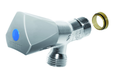 Tappventil kort med backventil Dy15 alt G1/2 planända