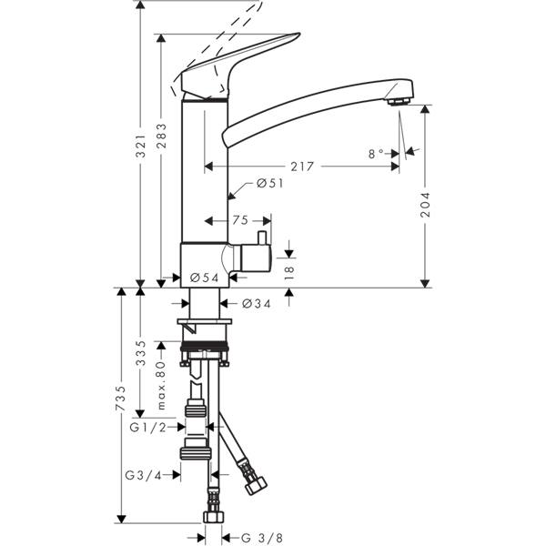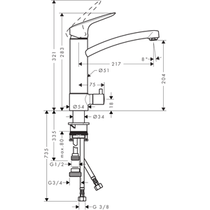 Logis M31 köksblandare 220, med diskmaskinsavstängning, 1jet Krom