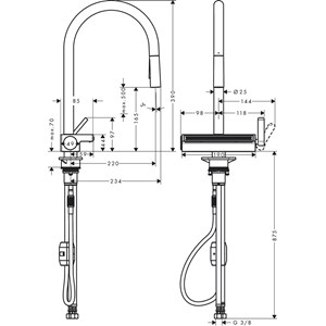 • består av: 1-grepps köksblandare, flerfunktionssil