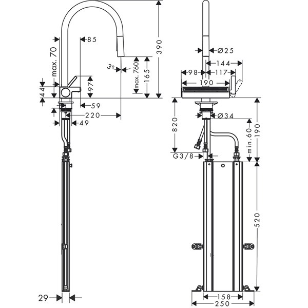 Aquno Select M81 köksblandare 170, utdragbar handdusch, 3jet, sBox Rostfri finish