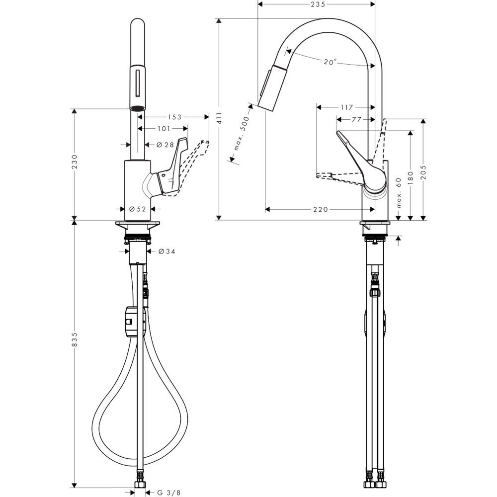 • keramisk avstängning med Eco-handtag för upp till 50% lägre flödeshastighet