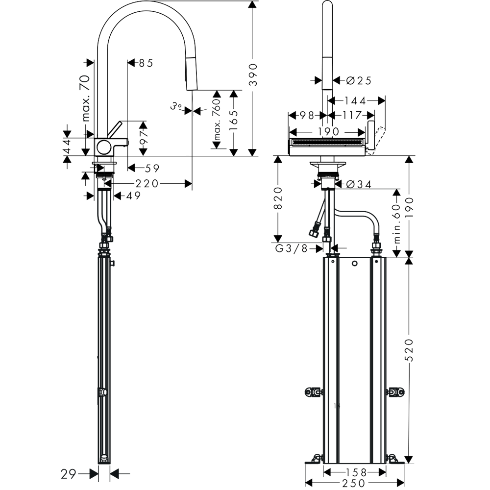 • består av: 1-grepps köksblandare, slanglåda, flerfunktionssil