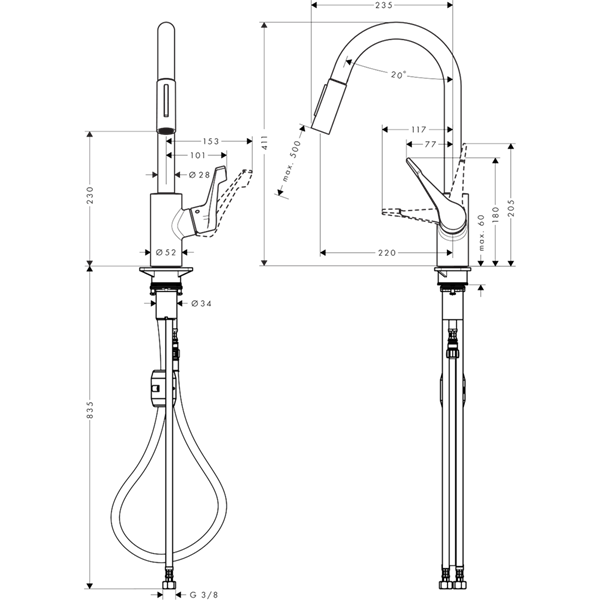 • keramisk avstängning med Eco-handtag för upp till 50% lägre flödeshastighet