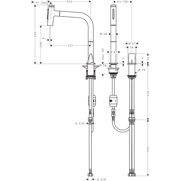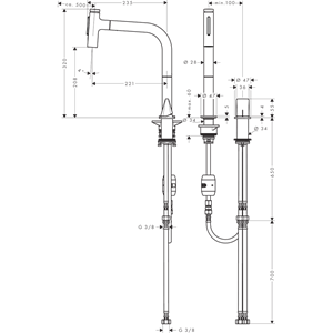 Metris Select M71 2-håls köksblandare 200 utdragbar handdusch, 2jet Finish Rostfri fini
