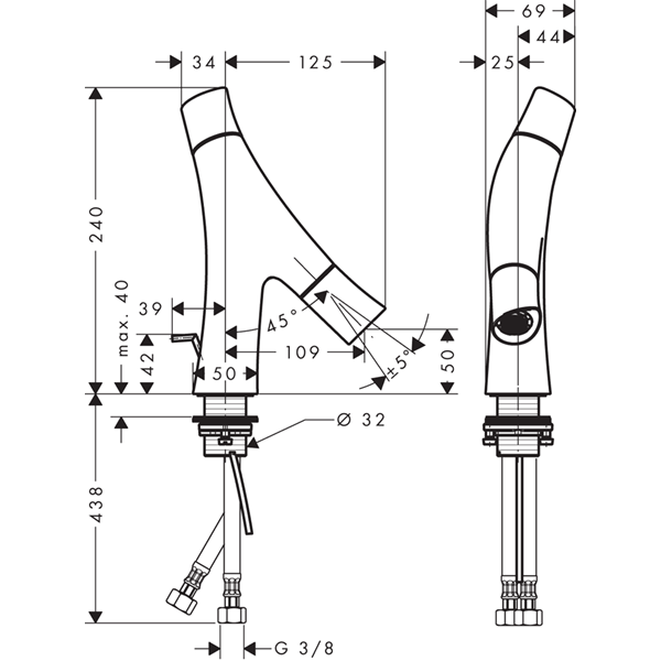 Axor Tvättställsblandare Starck Organic 50 med lyftventil