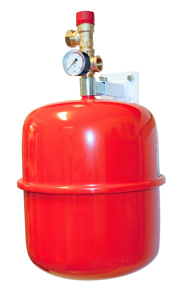 4 st Expansionskärl, 4 st Armatursats komplett med 1,5Kg Säkerhetsventil, 4 st Väggfäste G20 med ställbar längd