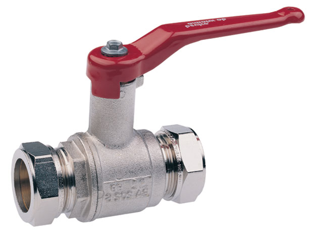 Kulventil med fullt genomlopp, klämringskoppling, handtag och hög spindelhals. Användningsområde: Tappvatten. Material: Avzinkningshärdig mässing. Arbetstemperatur: +2ºC/+100ºC. Max arbetstryck: PN 16.